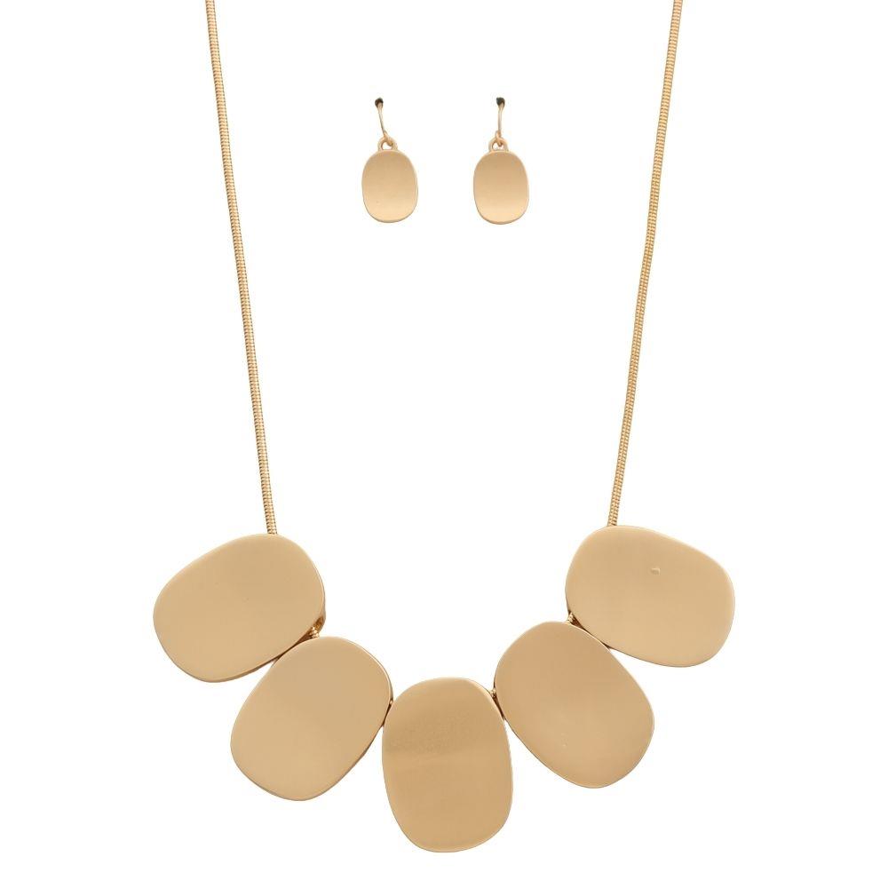 METAL DISC STATEMENT NECKLACE EARRING SET