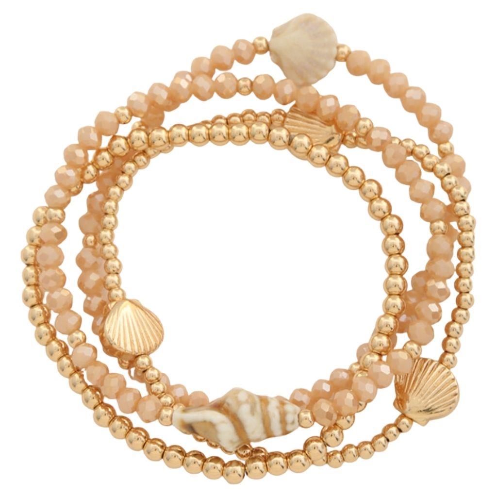 MULTI BEAD SEHLL STETCH BRACELET SET