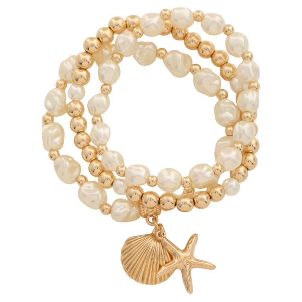 PEARL SEA LIFE SHELL CHARM STETCH BRACELET SET