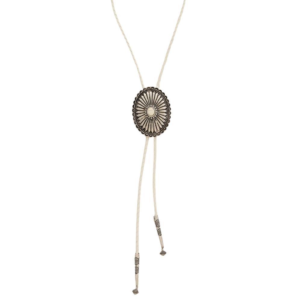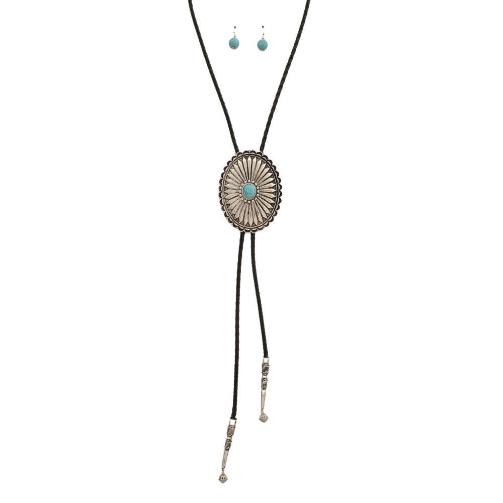 METAL OVAL TURQUOISE BOLO LONG NECKLACE EARRING SET