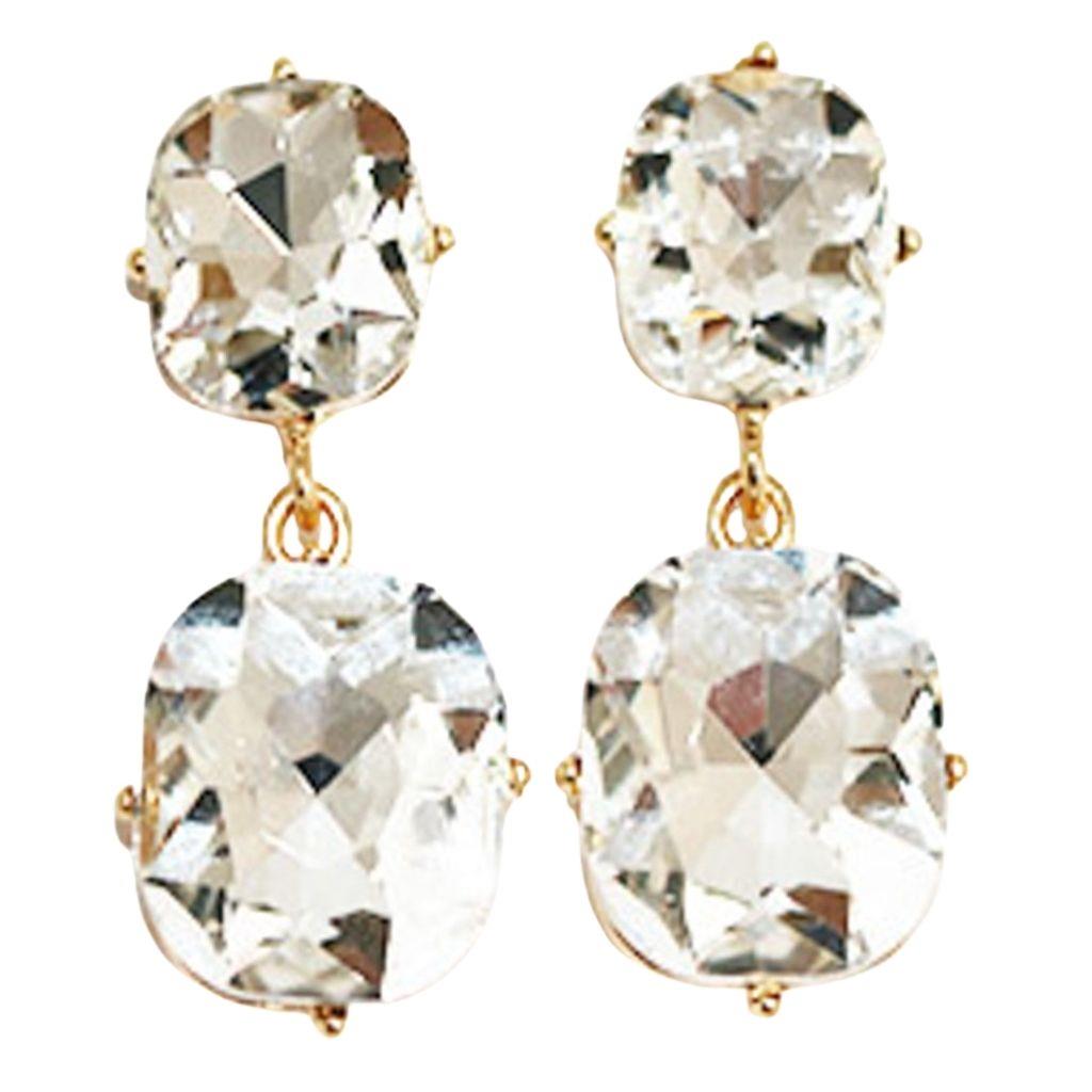 SQUARE CRYSTAL STONE DANGLE EARRING