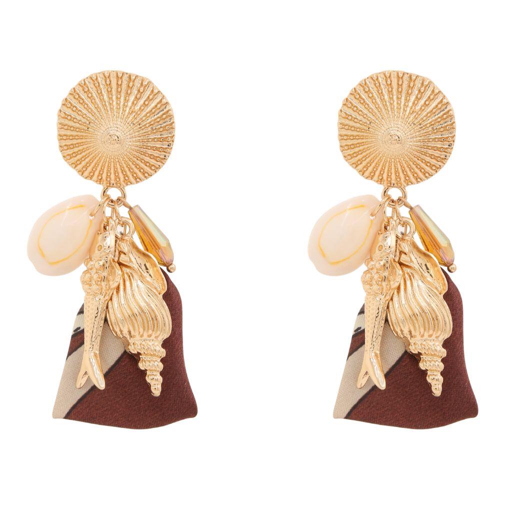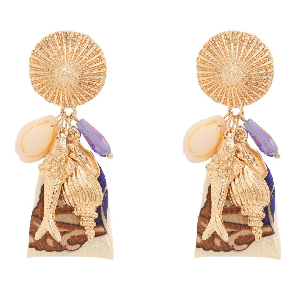 METAL SHELL CHARM CLUSTER DANGLE EARRING