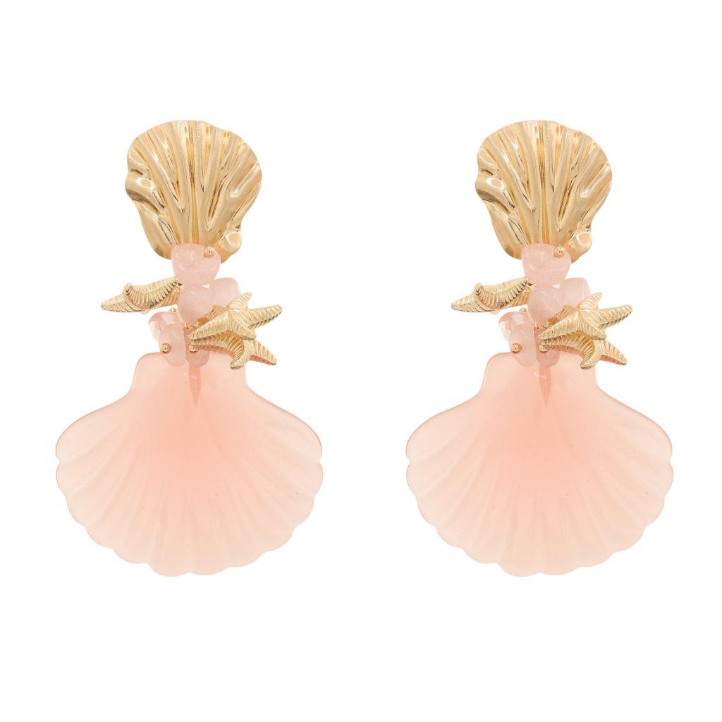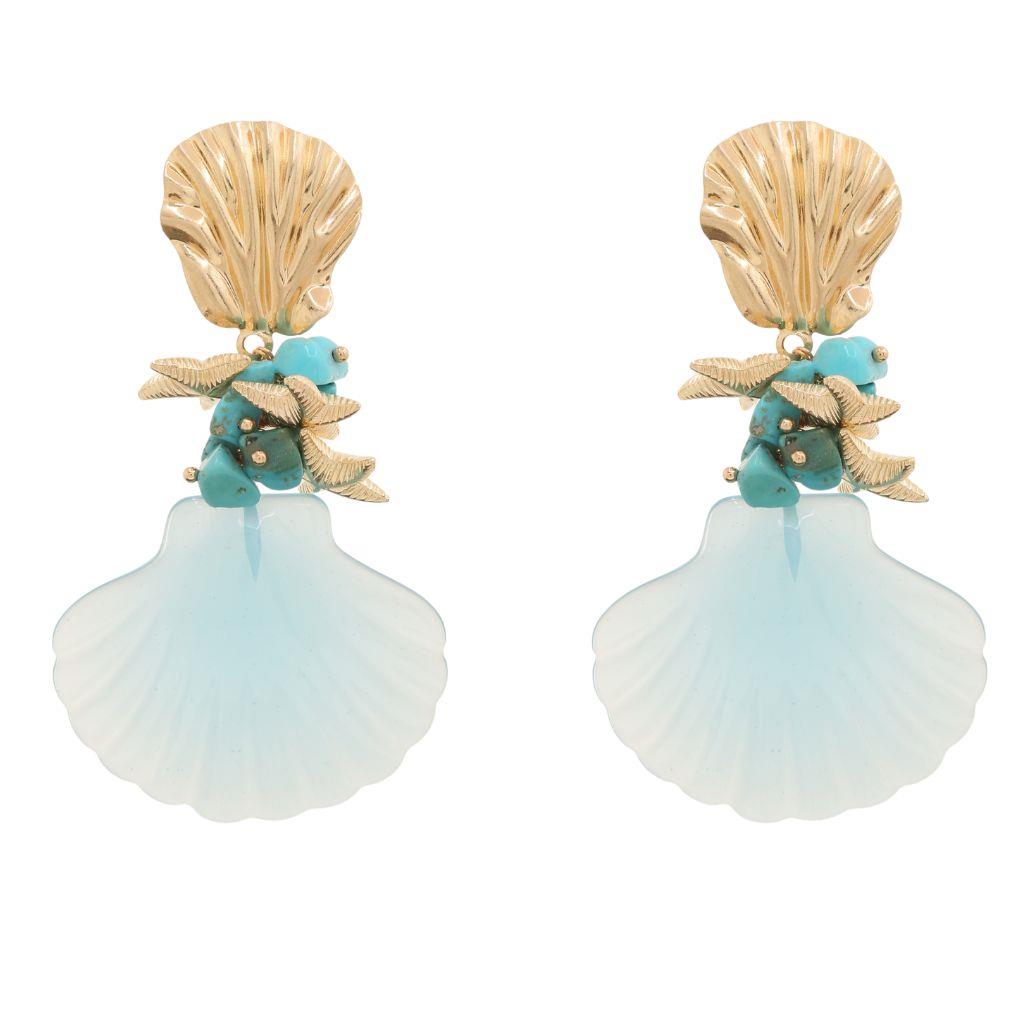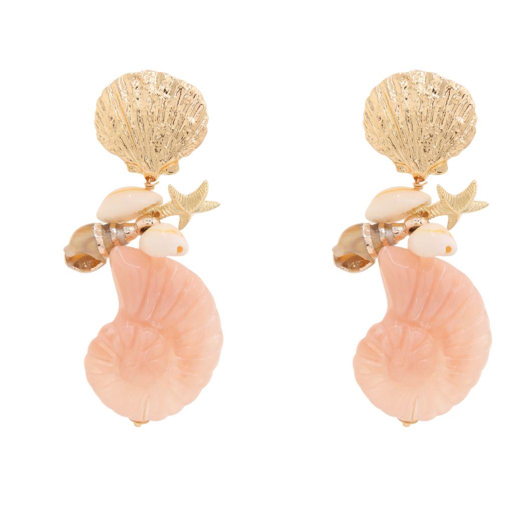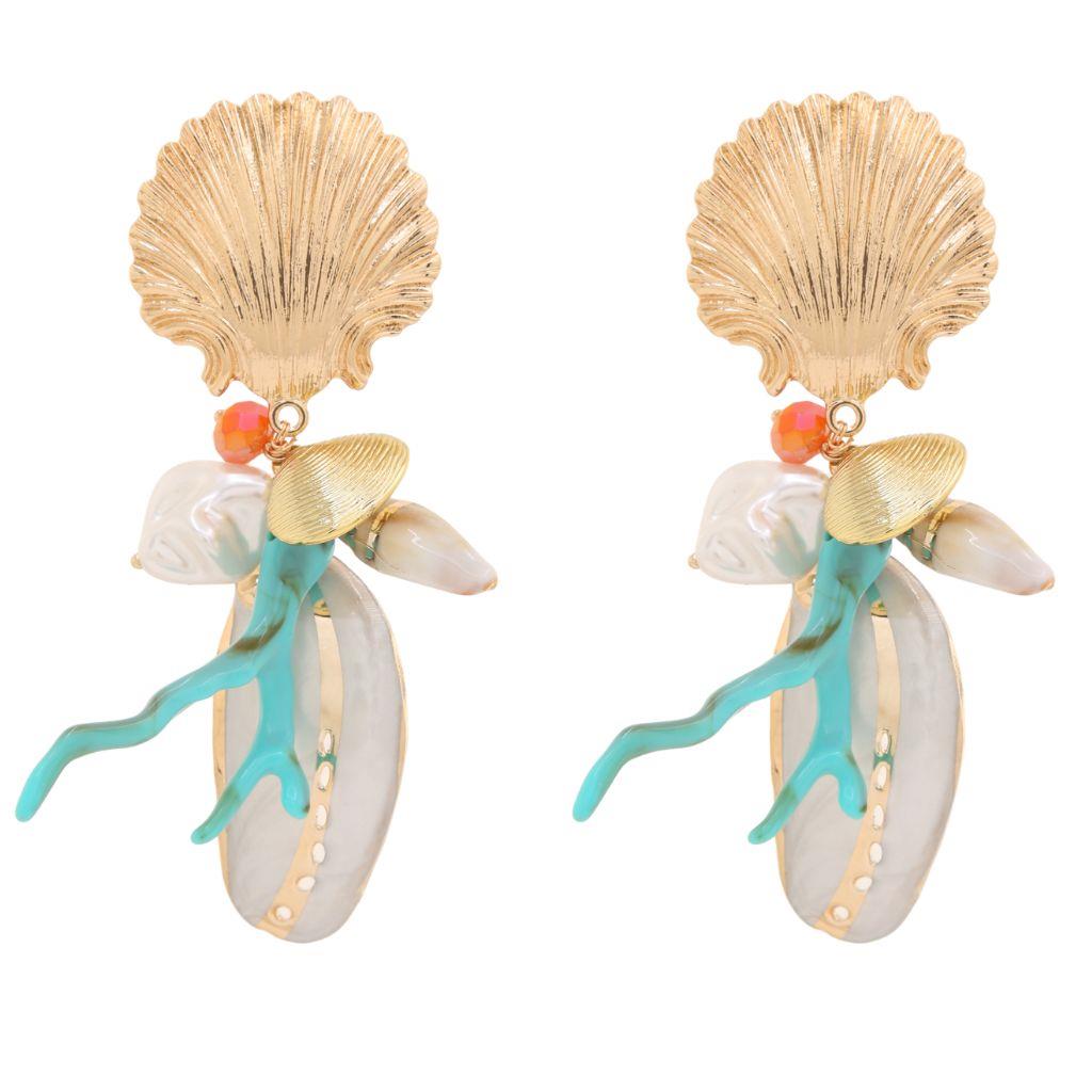 METAL SHELL CORAL CHARM CLUSTER DANGLE EARRING