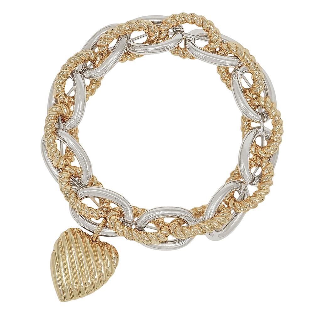 CHUNKY OVAL SHAPE STRETCHED BRACELET WITH HEART CHARM