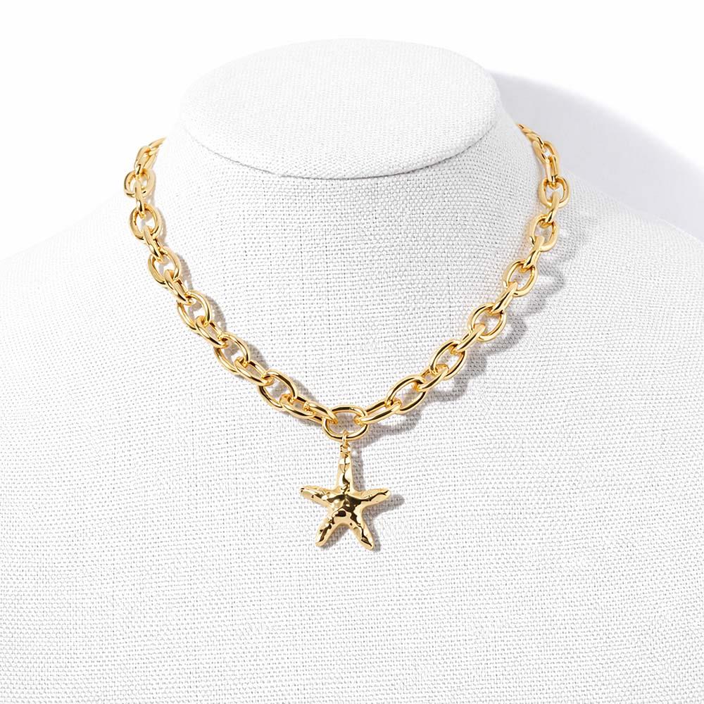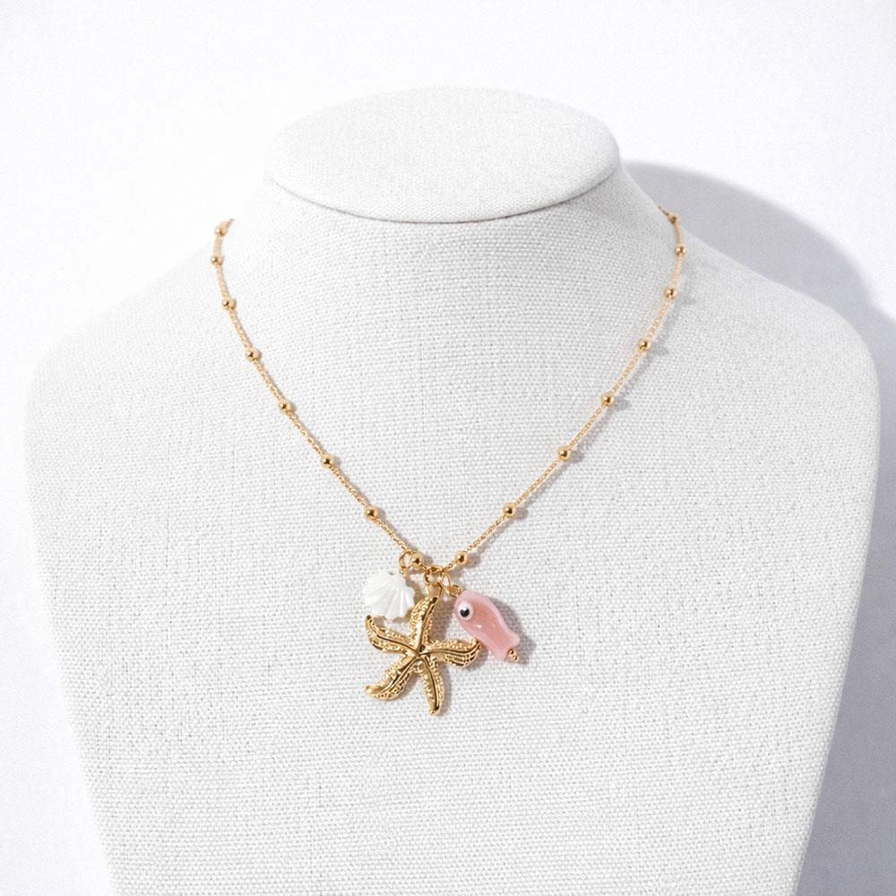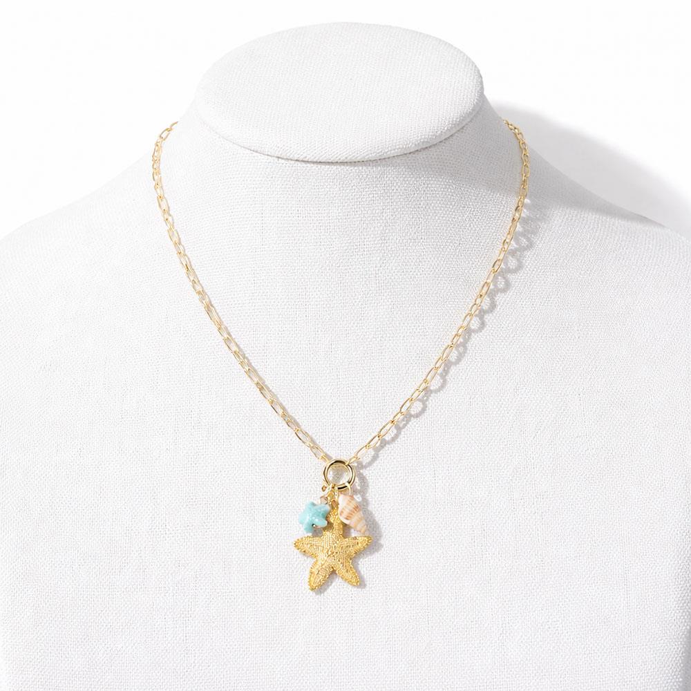 METAL SHELL STARFISH CHARM PENDANT NECKLACE
