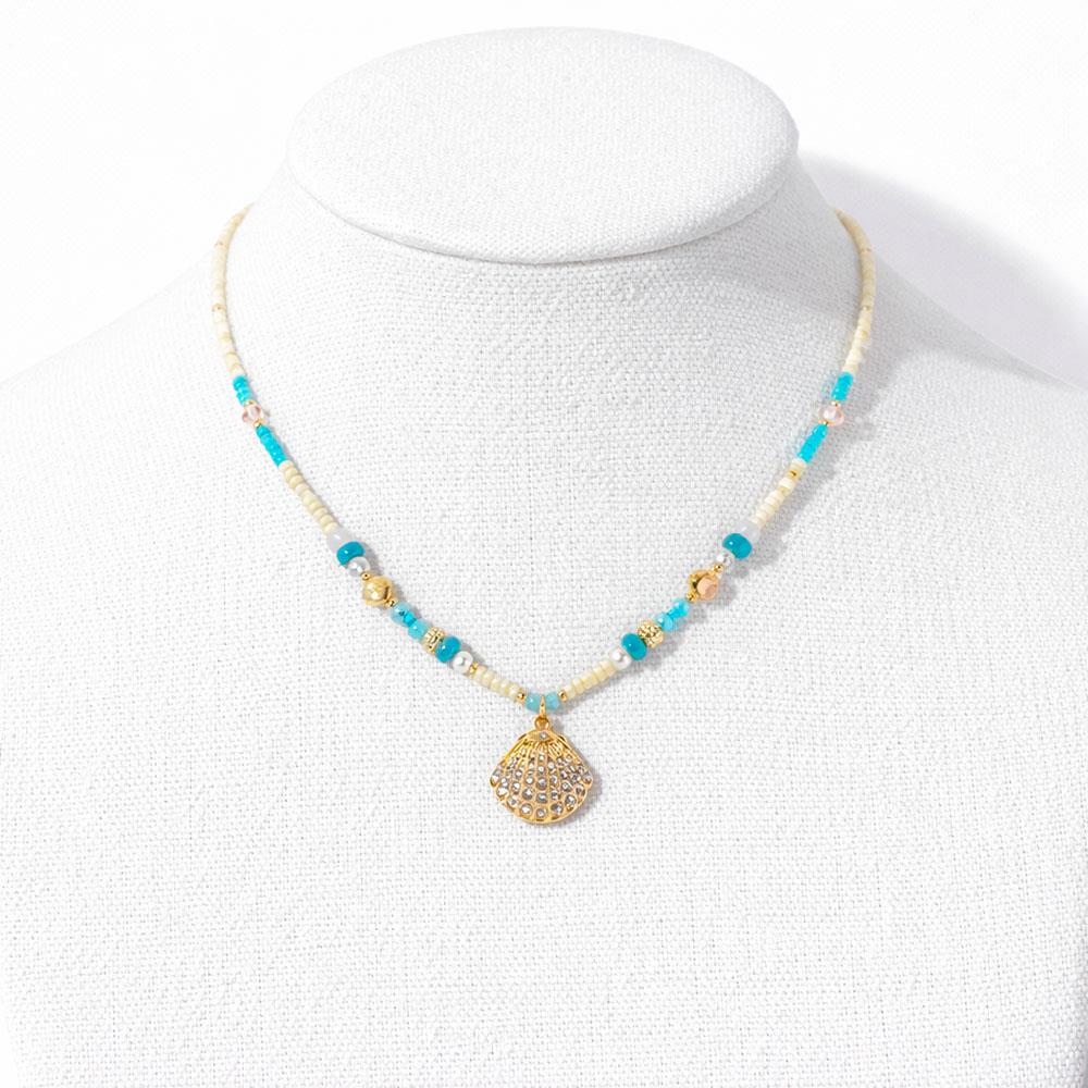 SHELL BLUE GLASS SEED BEAD NECKLACE