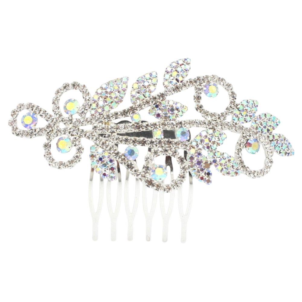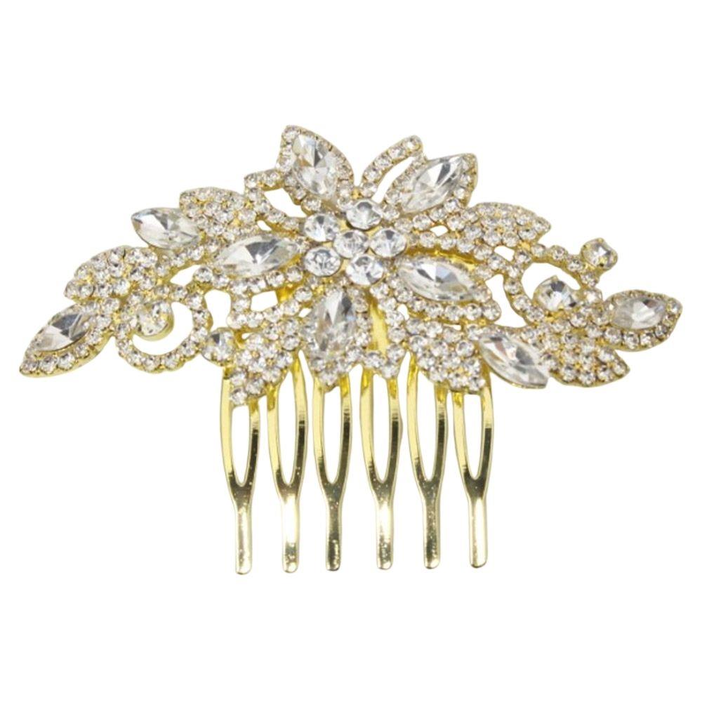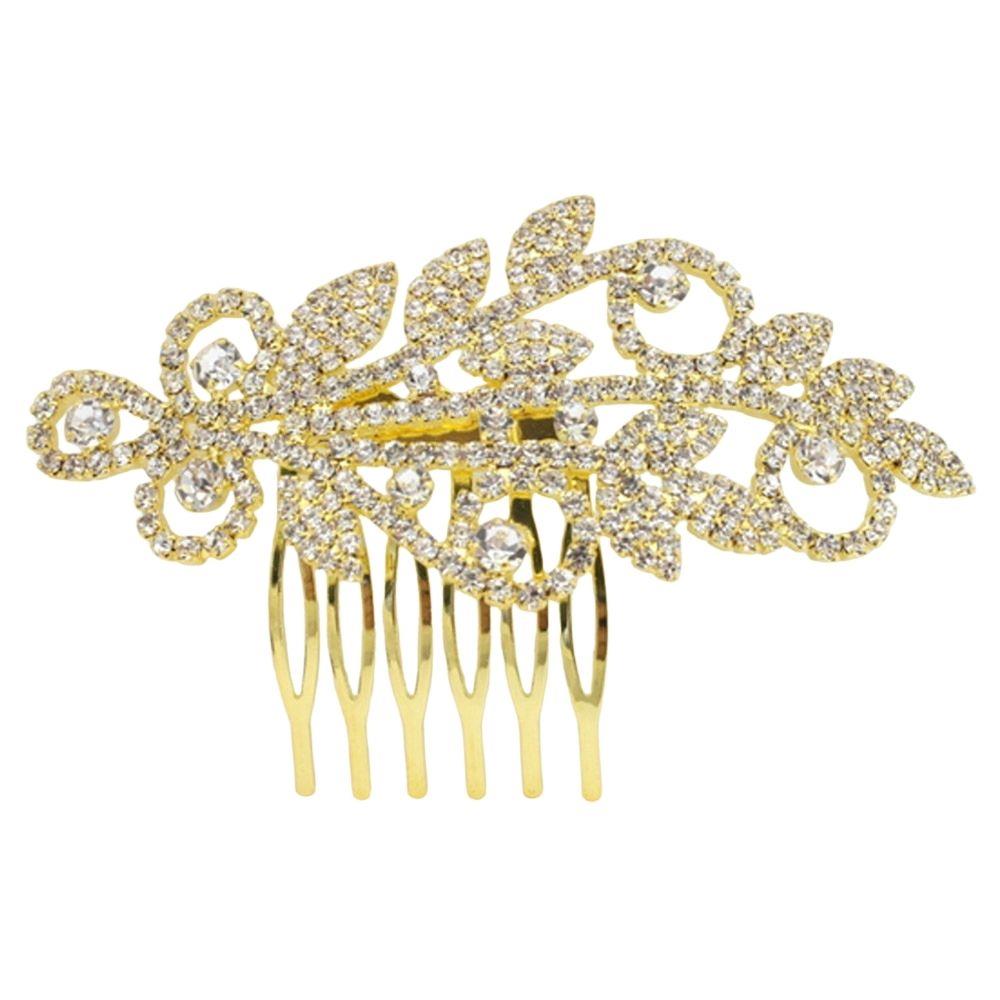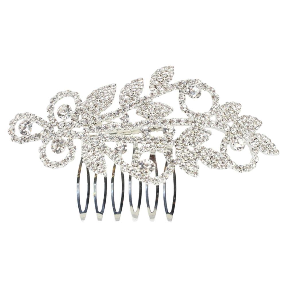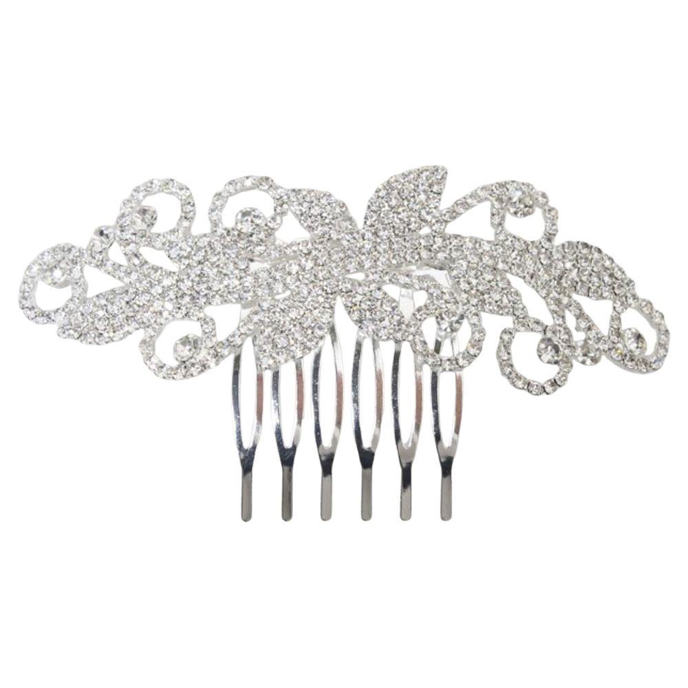 RHINESTONE FLORAL LEAF CLUSTER METAL HAIR COMB