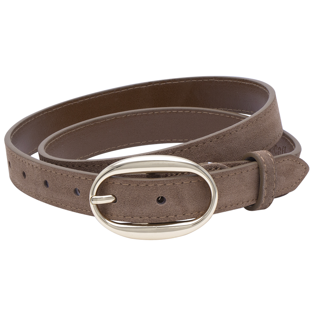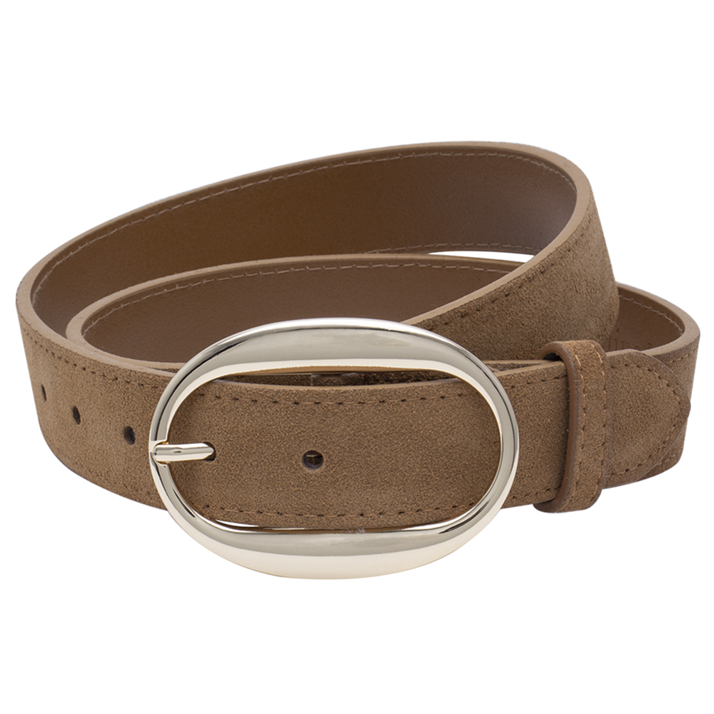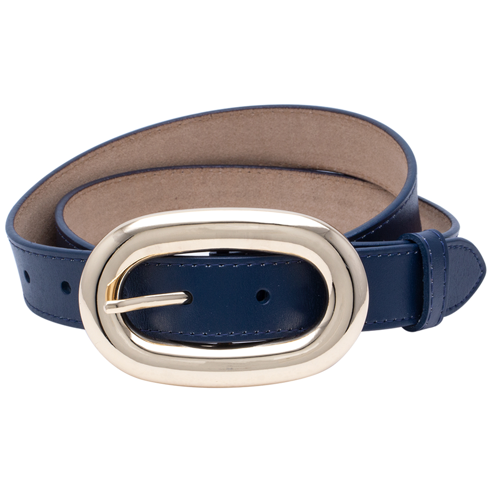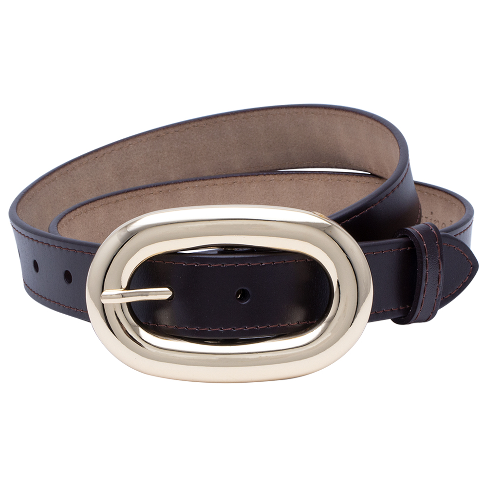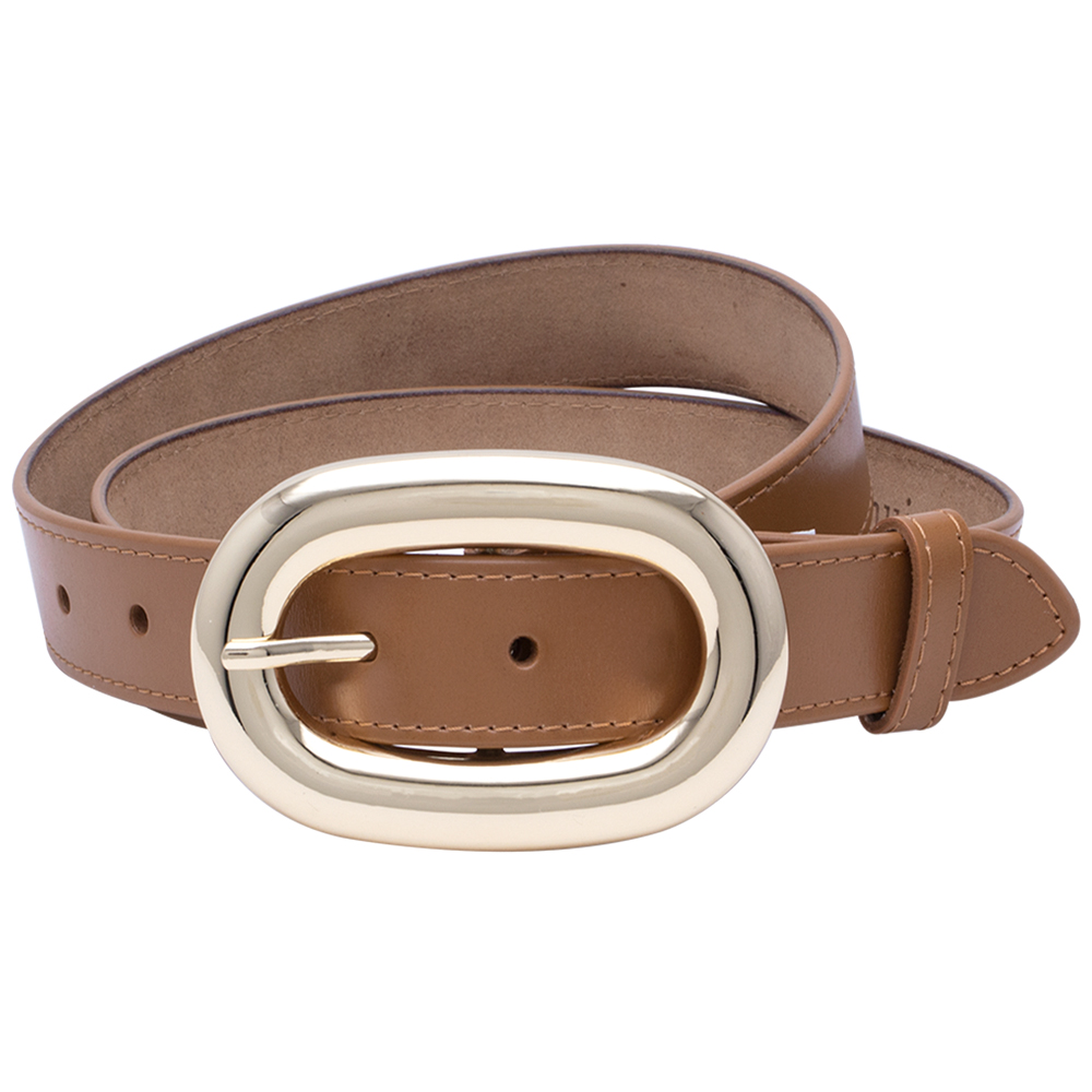 ENGRAVED OVAL BUCKLE LEATHER ELASTIC BELT