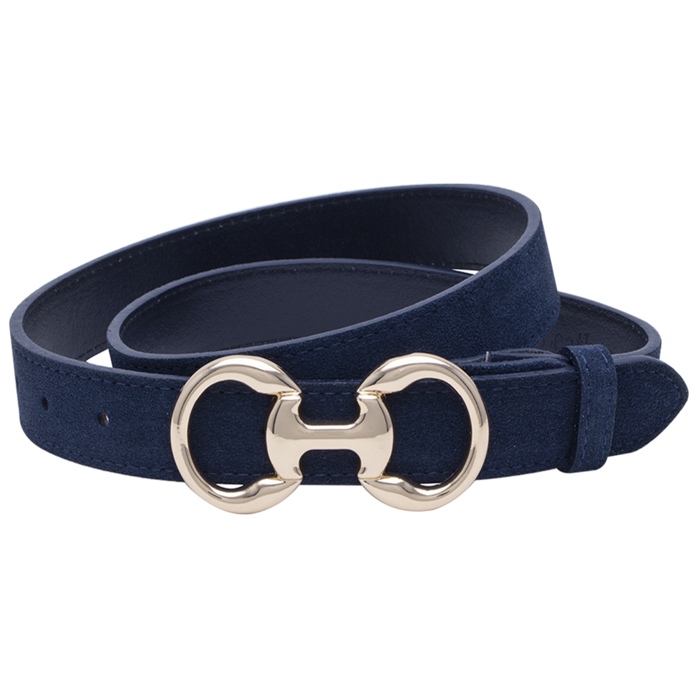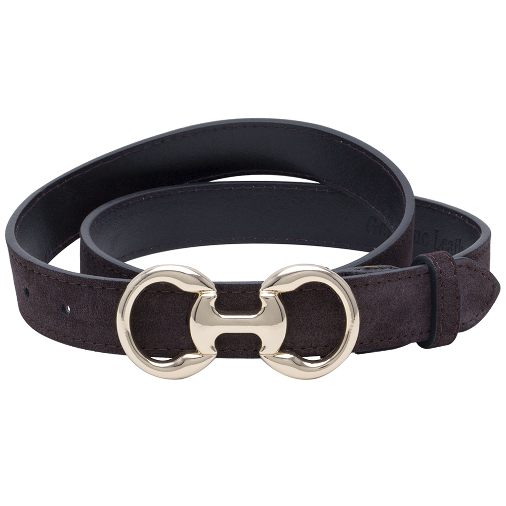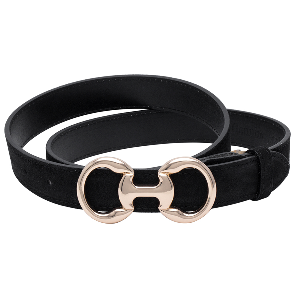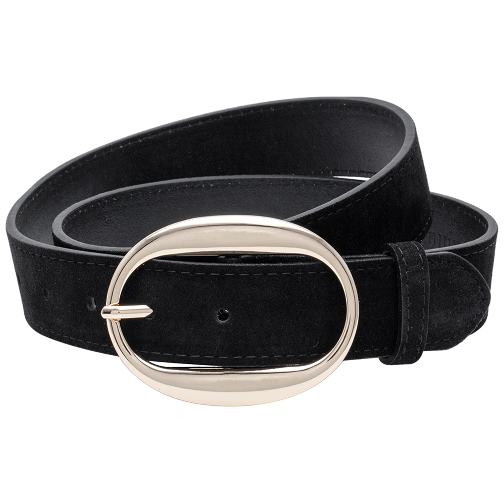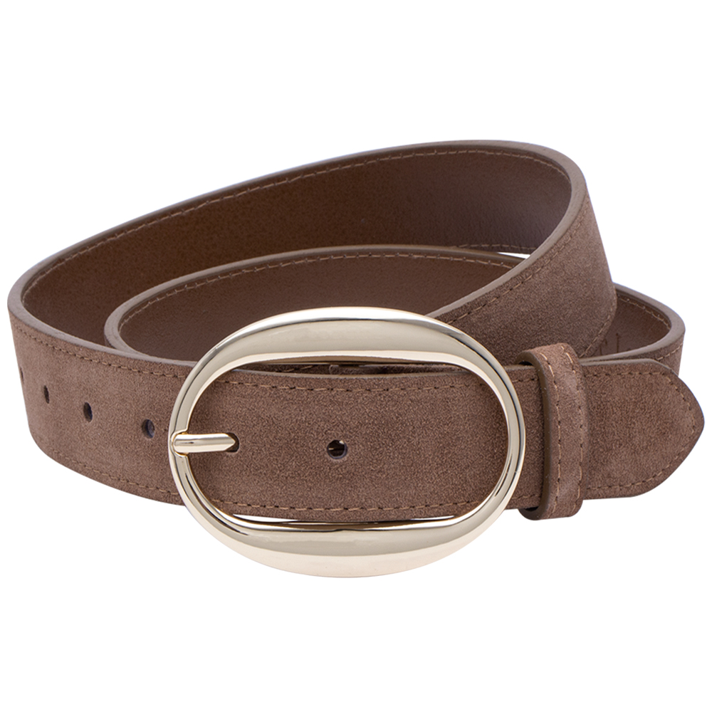 ENGRAVED OVAL BUCKLE LEATHER ELASTIC BELT