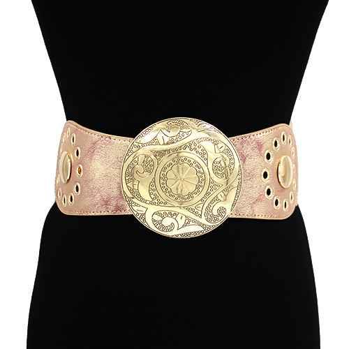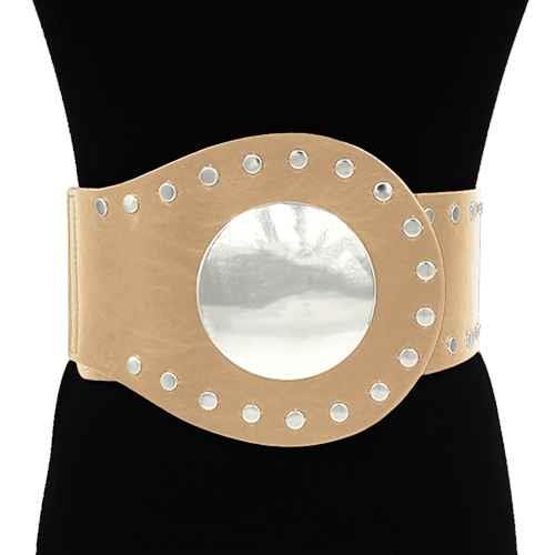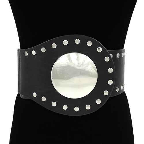 ROUND METAL STUDDED CIRCLE BUCKLE ELASTIC BELT