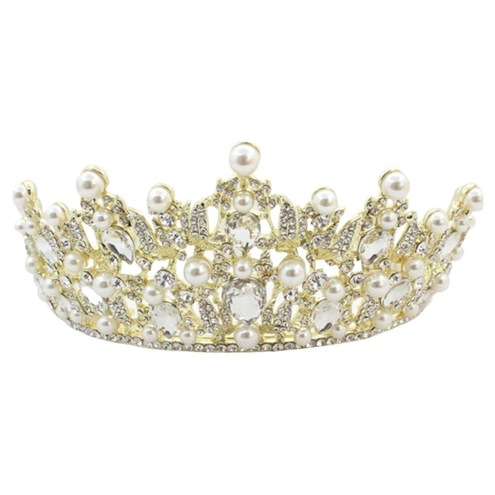 RHINESTONE FAUX PEARL ROUND CROWN TIARA
