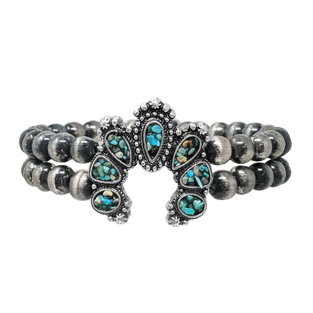WESTERN TURQUOISE CHIP HORSE SHOE BEADED BRACELET