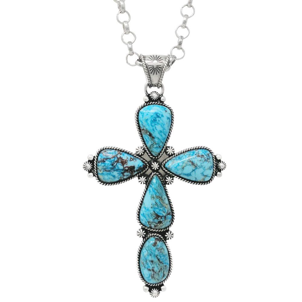 WESTERN SEMI STONE CROSS PENDANT NECKLACE