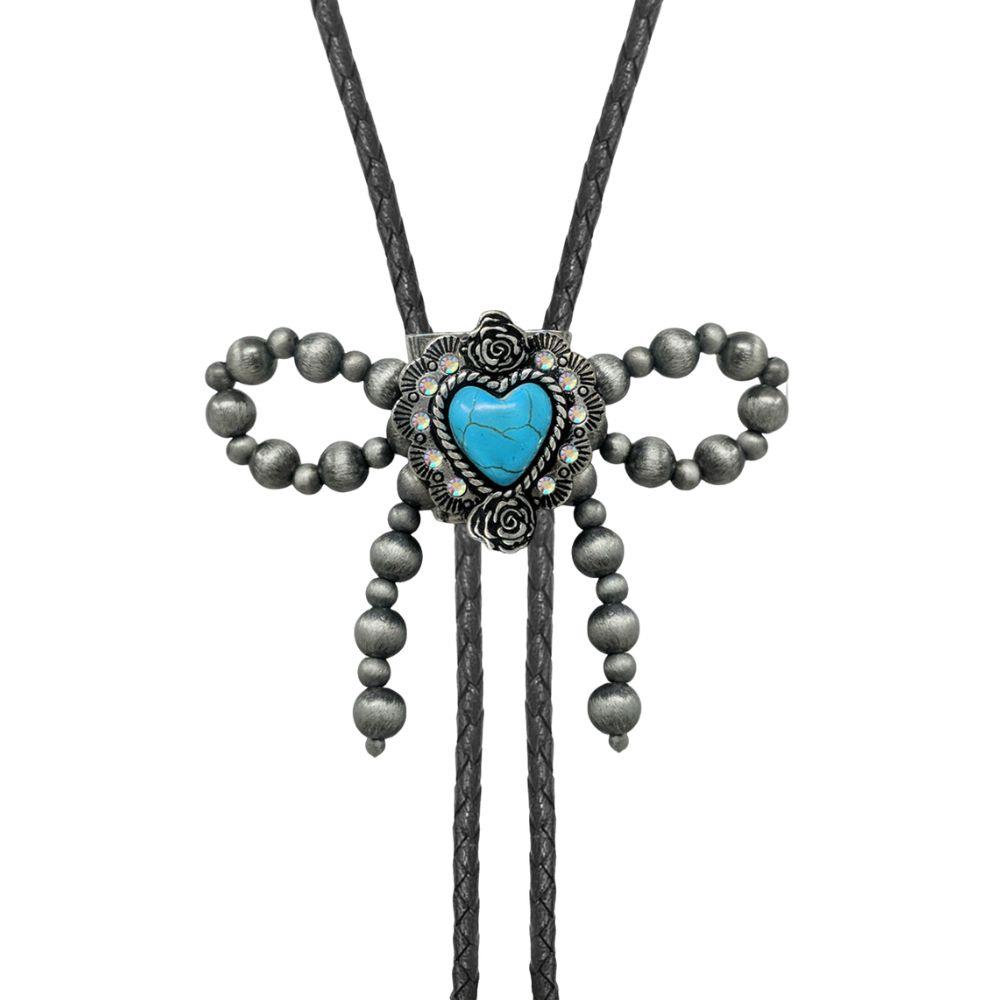 WESTERN BOLO TIE SEMI STONE HEART BOW NAVAJO NECKLACE