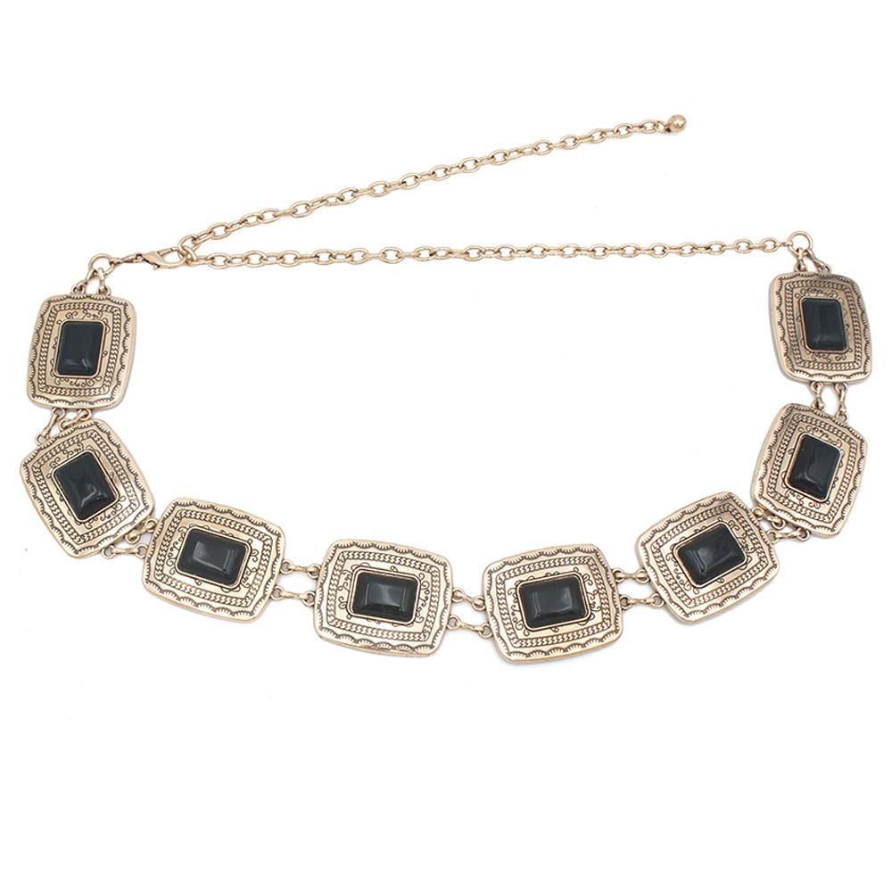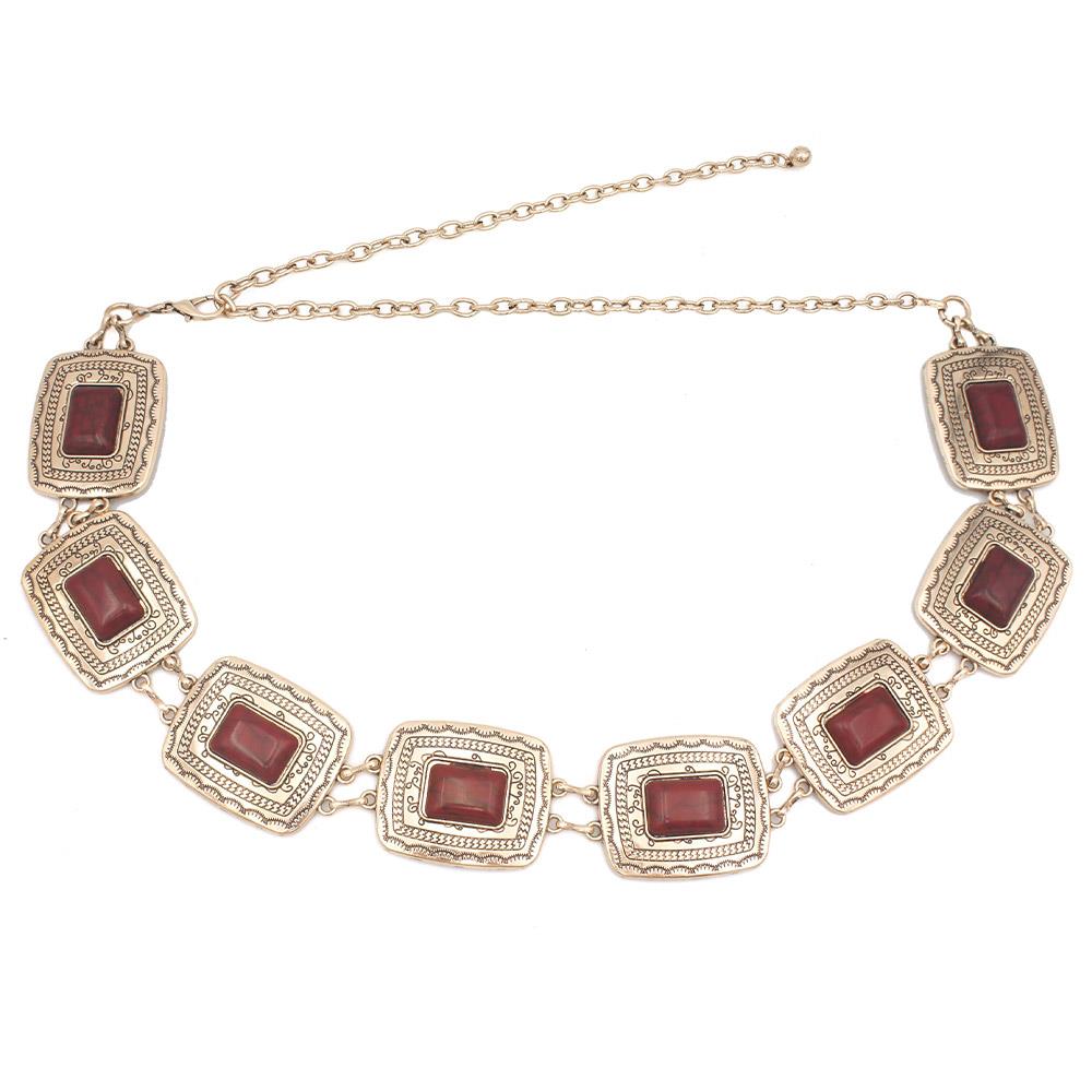 TRIBAL PATTERN CAB ACCENT RECTANGLE CONCHO CHAIN BELT