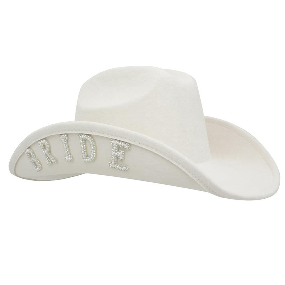 PEARL & RHINESTONE BRIDE PATCH MICROSUEDE COWBOY HAT