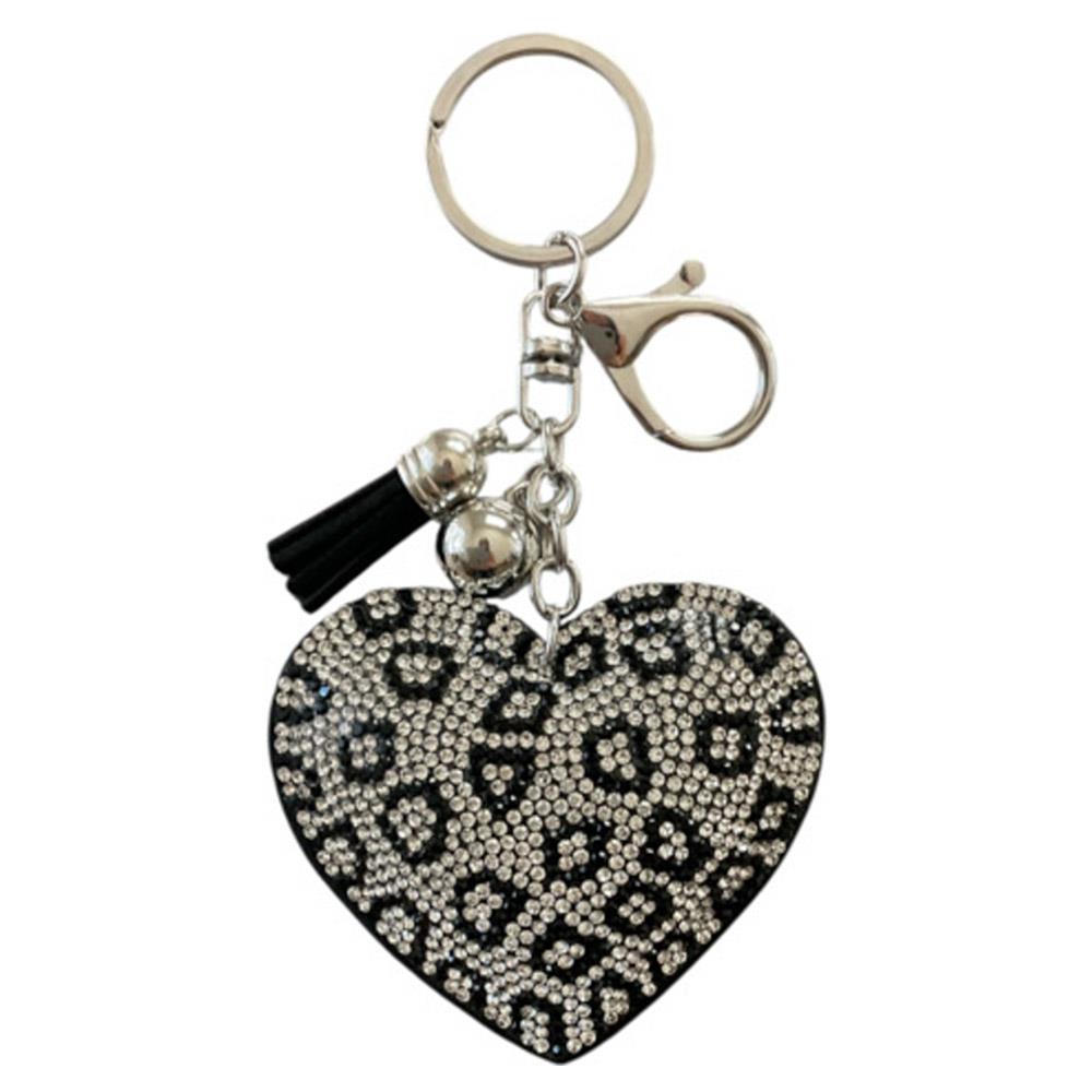RHINESTONE LEOPARD HEART KEYCHAIN WITH TASSEL