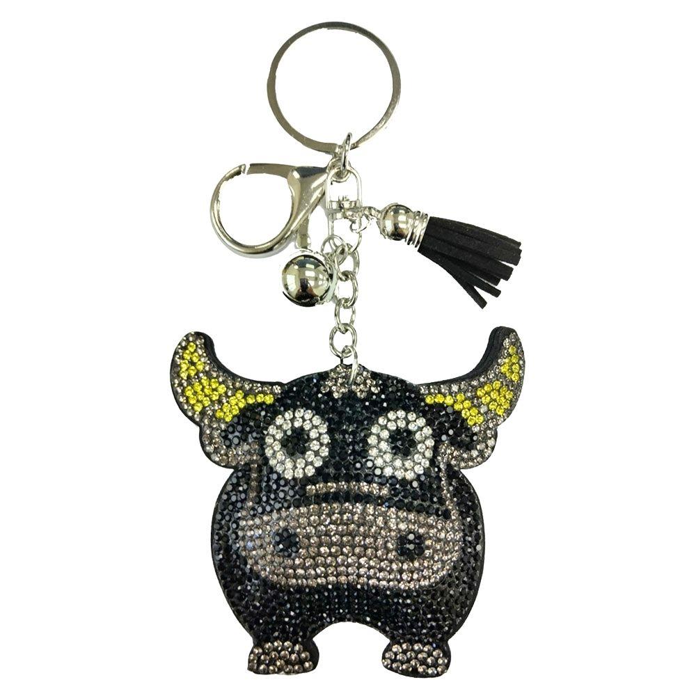 RHINESTONE CUTE BULL KEYCHAIN WITH TASSEL