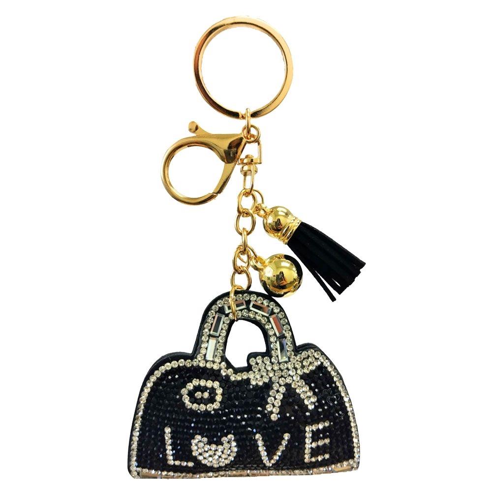 RHINESTONE LOVE HANDBAG KEYCHAIN WITH TASSEL